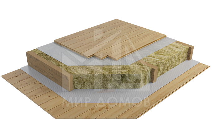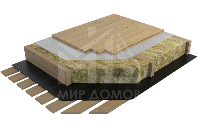 Пол 2-ого этажа – 200 мм плитный базальтовый утеплитель Rockwool